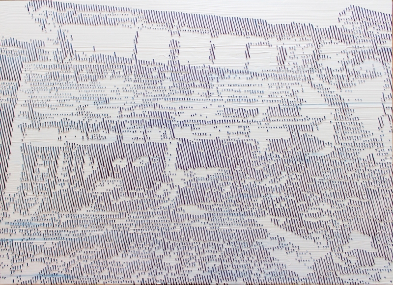 structure object 01, 2016, gesso, oil on panel and cotton, 97 x 130 cm