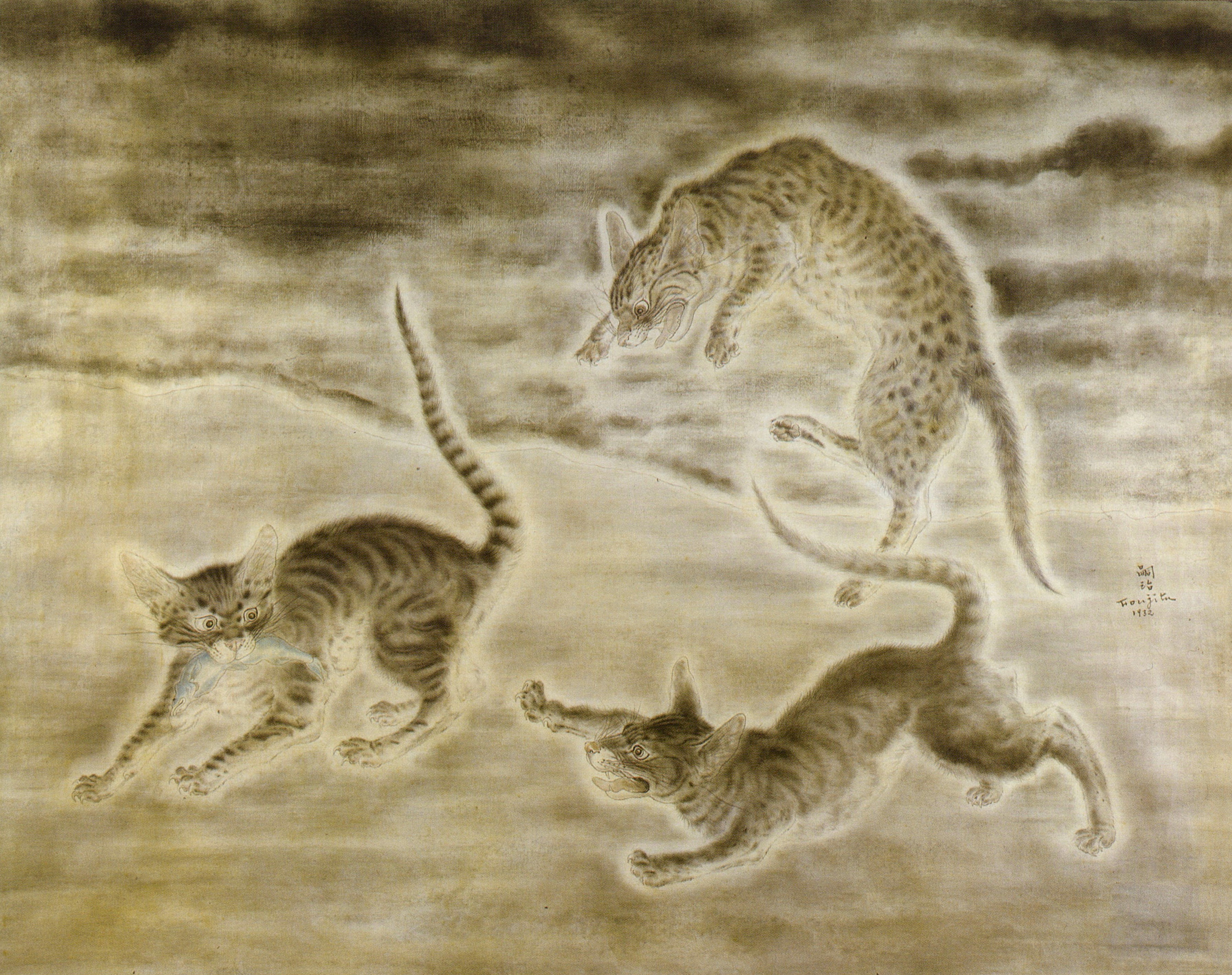 Three cats,1932, natural pigment on paper, 69.5 X 88.6 cm