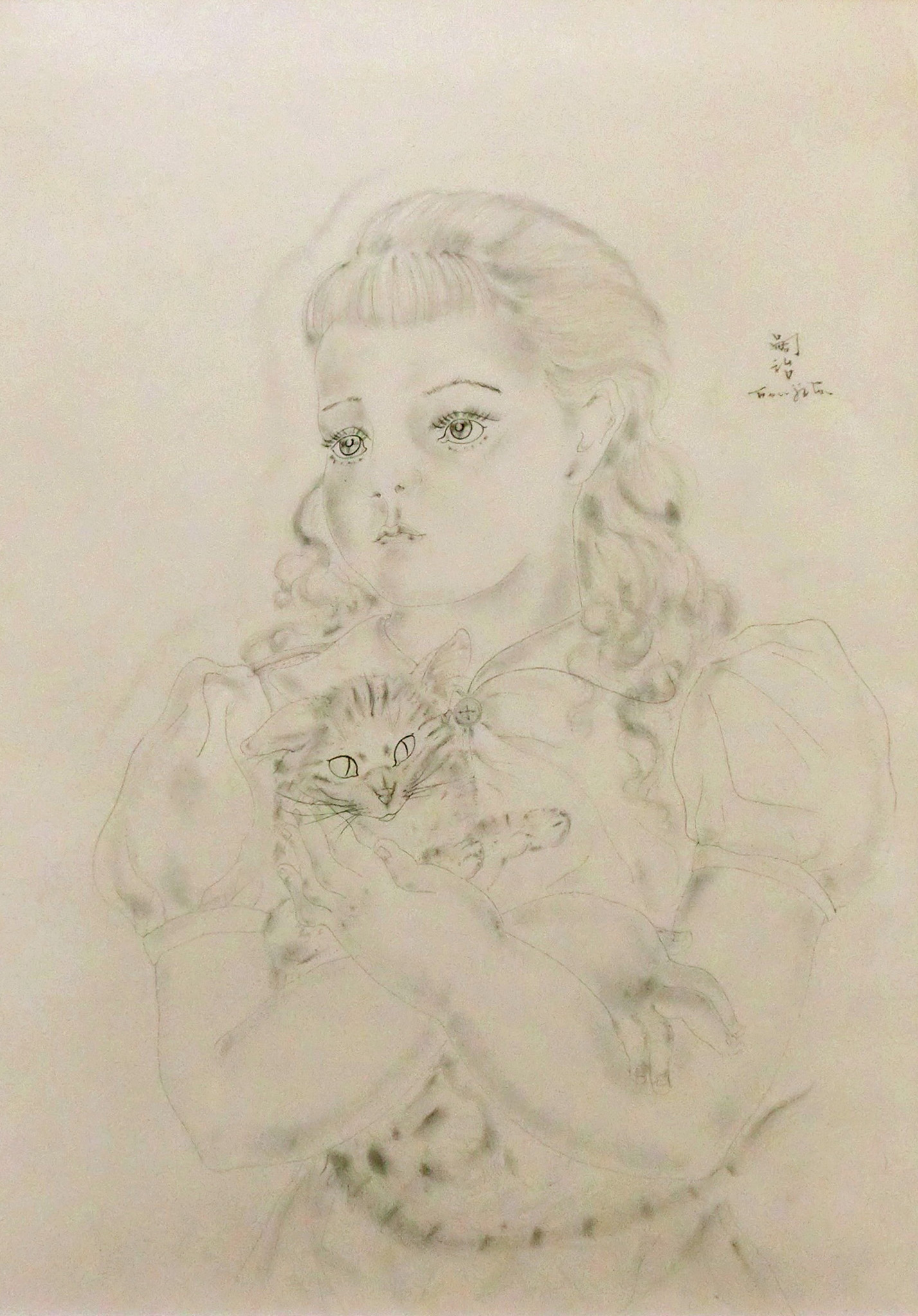 Léonard Tsuguharu Foujita was born on November 27, 1886 in Tokyo, Japan. He went on to study at the Tokyo National University of Fine Arts and Music in 1910.After his move to Paris in 1913, Foujita met and became friends with prominent avant-garde artists of the day such as Pablo Picasso, Henri Matisse, Amedeo Modigliani, and Chaïm Soutine. During the 1910s, Foujita participated in the bohemian cultural community/ society in Montparnasse, Paris. His personal charm, as well as his representational paintings often depicting himself, cats, and women found immediate attention and success in Paris despite having no connections beforehand.